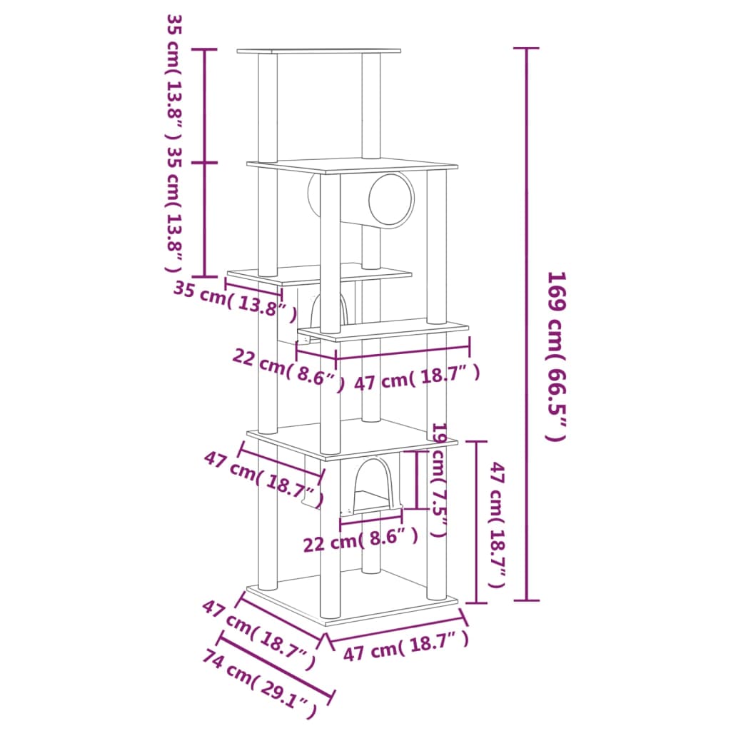 Dieser alles-in-einem-Kratzbaum bereitet deinen Katzen endlosen Spaß! Alles-in-einem Katzenturm: Das mehrstufige Katzenmöbel besteht aus 2 Häusern, 1 Tunnel und Plattformen und bietet deinen Katzen einen perfekten Platz zum Klettern, Sitzen, Krallenschärfen, Verstecken und Entspannen.Weicher Plüsch: Mit extra dickem und weichem Plüsch bezogen, ist der Kratzbaum gut belüftet, kratzfest, sehr bequem und warm.Säulen mit natürlichem Sisal: Die widerstandsfähigen und robusten Säulen sind mit natürlichem Sisal umwickelt und bieten deinen geliebten Katzen den perfekten Platz, um ihren Kratzinstinkte auszuleben, sodass Kratzern an deinen Möbeln verhindert werden. Hinweis:Jedes Produkt wird mit einer Montageanleitung in der Verpackung für einen einfachen Zusammenbau geliefert.